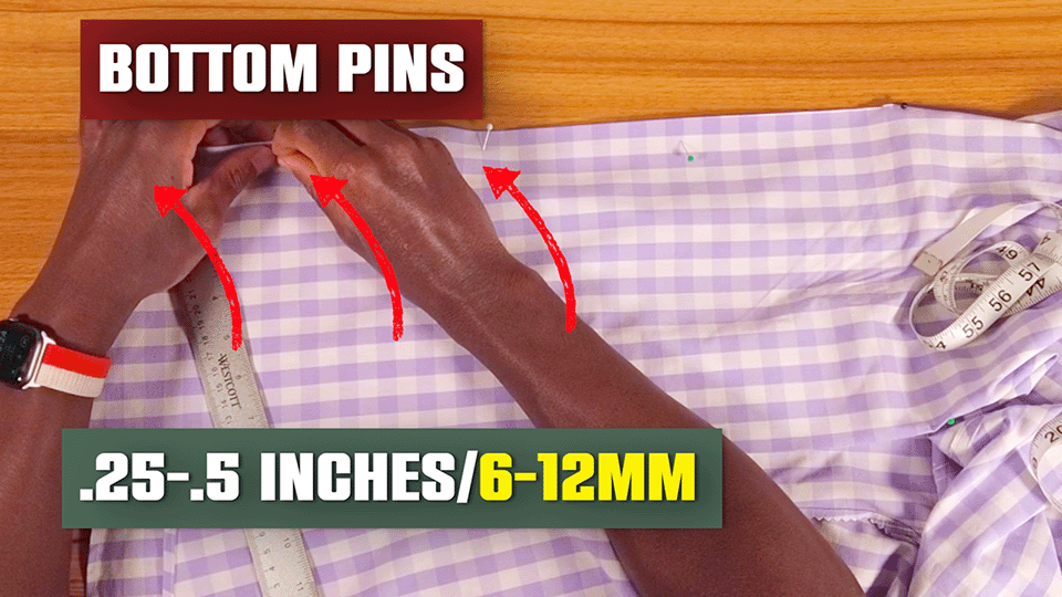 Move your sewing pins to the nearest half inch or 12 mm.