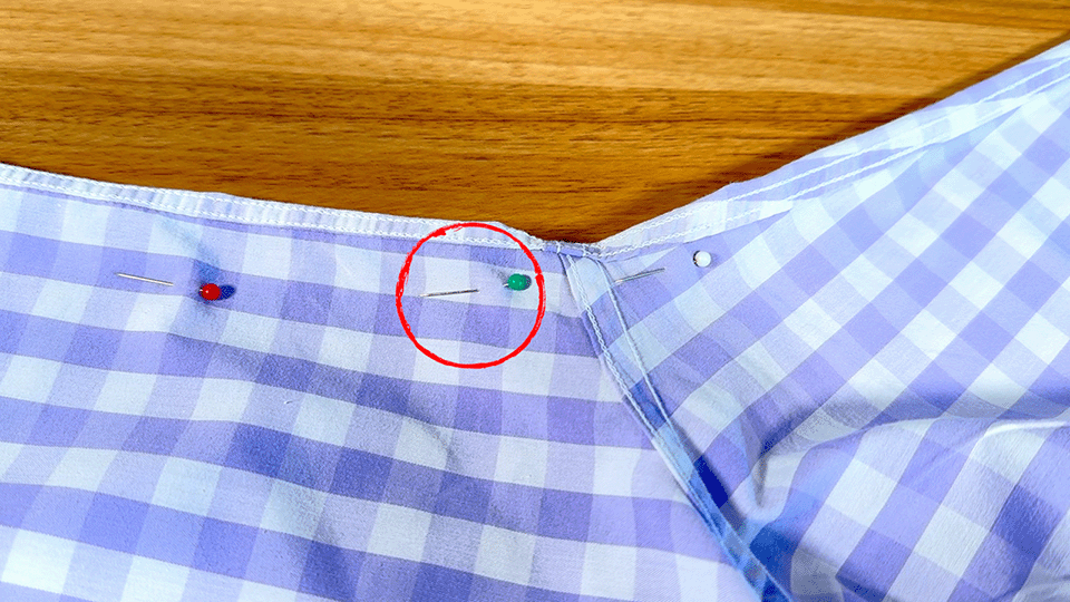 This part is optional, but when I put sewing pins in my dress shirt I like to put my pins on opposite sides of my dress shirt. The reasoning behind that is if I pin normally, then I will have a solid clean pass through my sewing machine on one side where the bulk of my garment is off to the side of my machine. Great right? Well yeah it is, but that means the other pass will be harder because I will have the bulk of my garment between my machine and needle. That means I’ll have to kind of stuff it underneath there to the other side. It sucks doing that, so if you pin opposite sides you can take advantage of a clean sewing machine pass TWICE!
