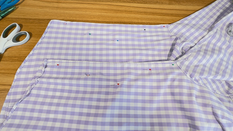 Add two more sewing pins at the bottom of your shirt directly below each of the top two pin locations. Having stripes on my shirt makes this way easier thats for sure. That being said if your lines aren’t PERFECTLY straight it’s all good!