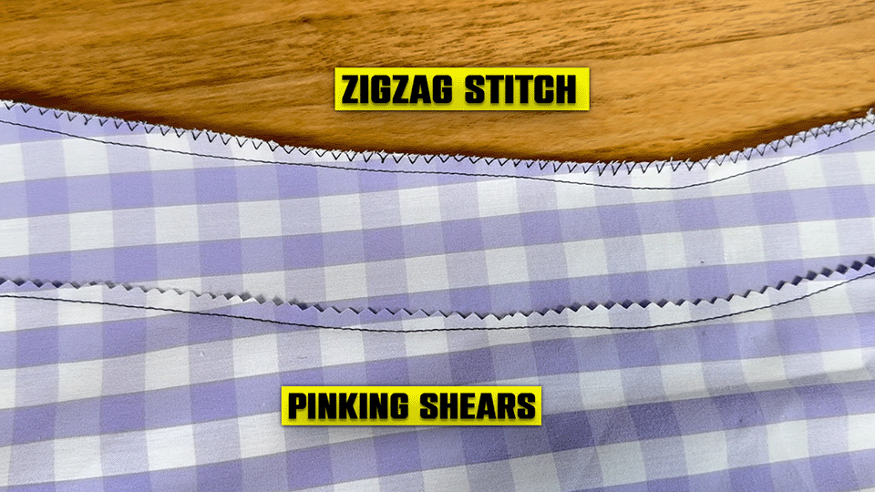 The other way is using pinking shears, which are those zigzag scissors that cut said pattern into the edge achieving the same result. Either one is fine.
