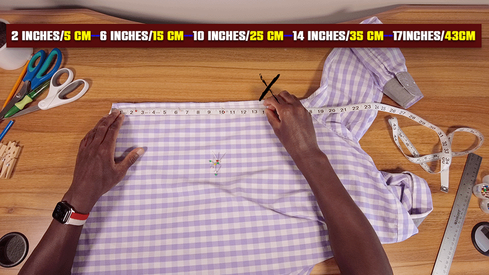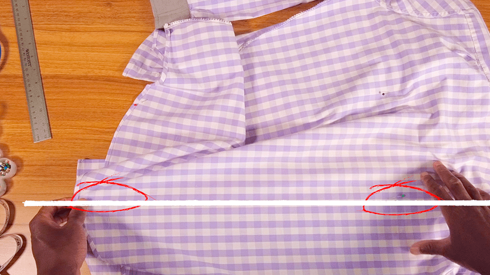 Put 5 sewing pins in the side seam at these measurements.