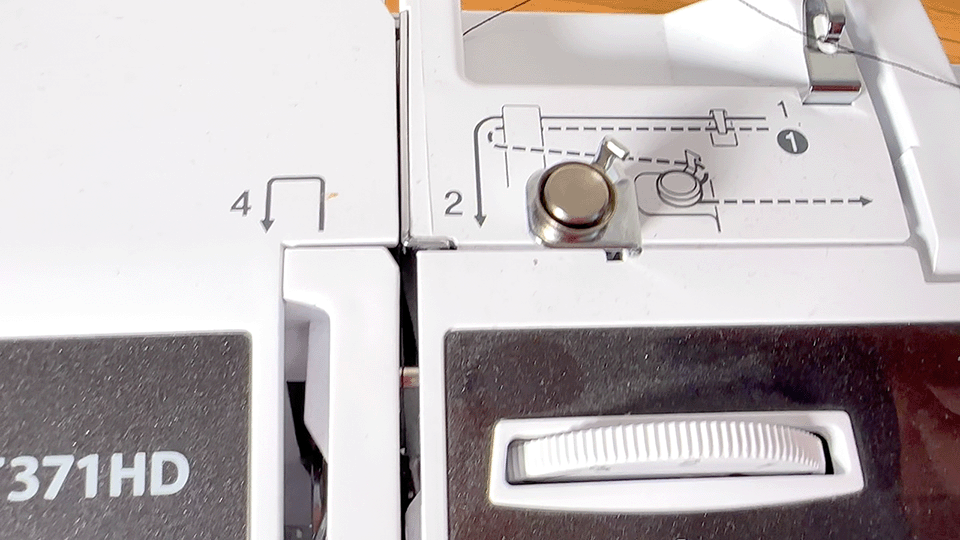 Most machines have diagrams and numbers that guide you on threading from the spool right down to the needle. Its seriously a 1-2-3 then 4 step process. Not only do the numbers obviously go in order, but those diagrams give you a good idea on what to do with the thread. If one of the steps has multiple options, both are listed. Like here it shows you how to thread it down to the needle, as well as threading it back towards your bobbin winder to make a bobbin.